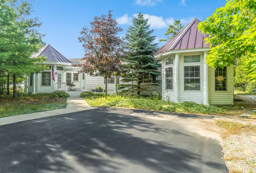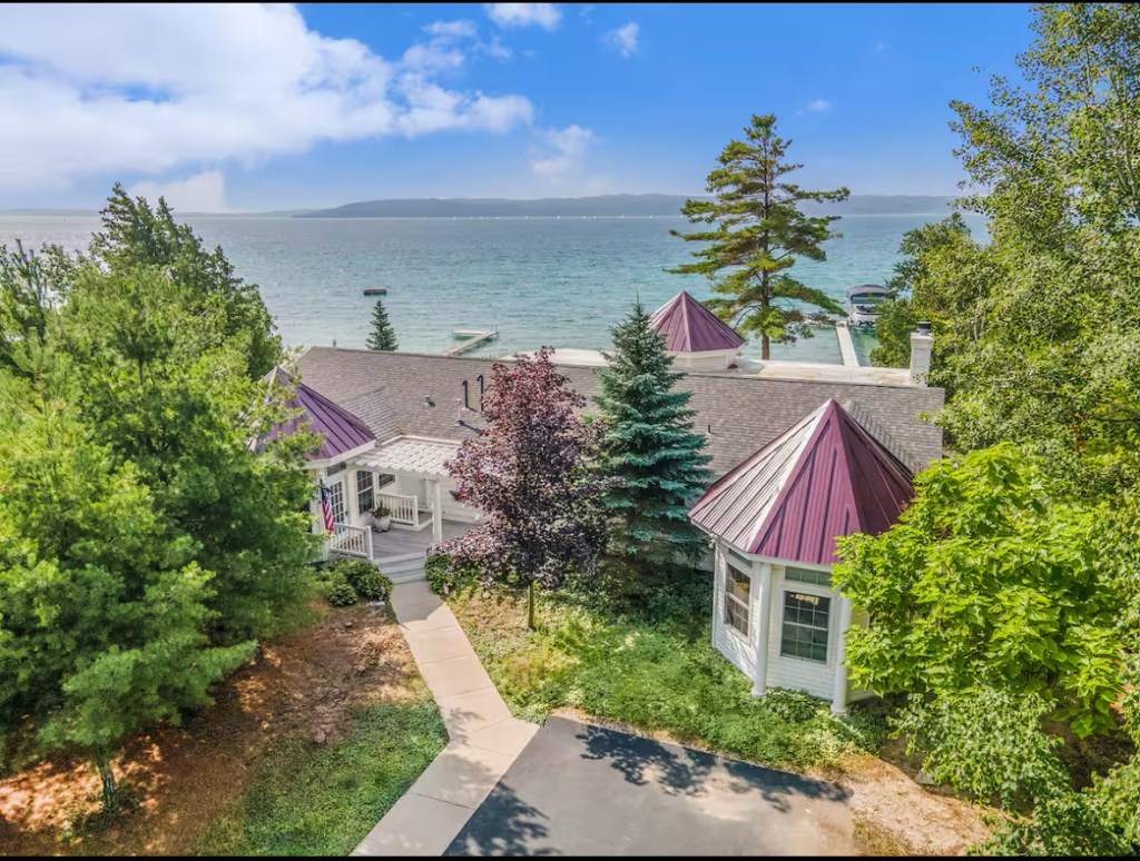 Cozy Beachfront Cottage on the pristine Crystal Lake, Frankfort, MI. Sits on an acre and half of private land with lake front and a sandy beach etc. Get cozy with an outdoor fire pit on cooler evening on a spacious patio.